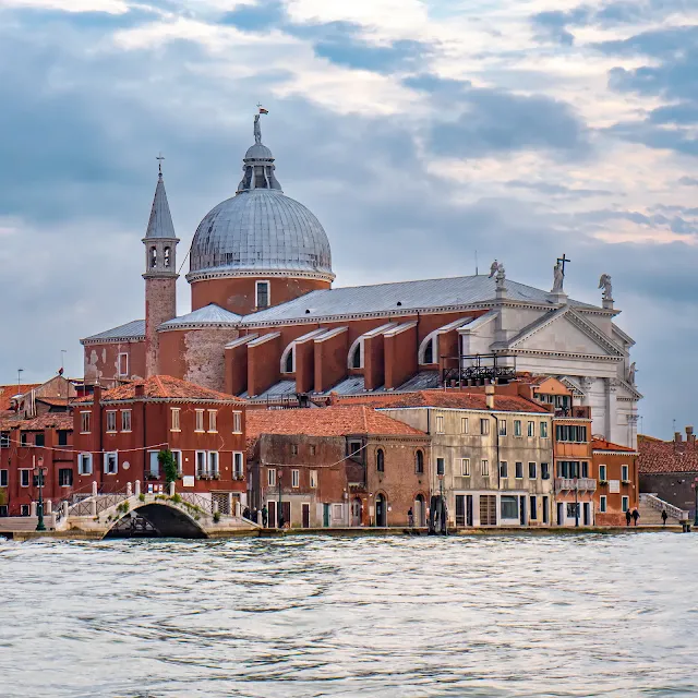 Базилика бенедиктинского монастыря Святого Георгия в Венеции, на острове Сан-Джорджо-Маджоре (Chiesa di San Giorgio Maggiore). Белый собор с известными картинами и видами на Венецию с башни, построенный по проекту Андреа Палладио: